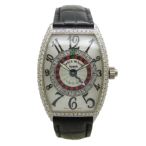 時計としては18金が一般的です。色はシルバー系ですが若干黄色っぽく見えます。メッキをかけて白くしてある場合があります。