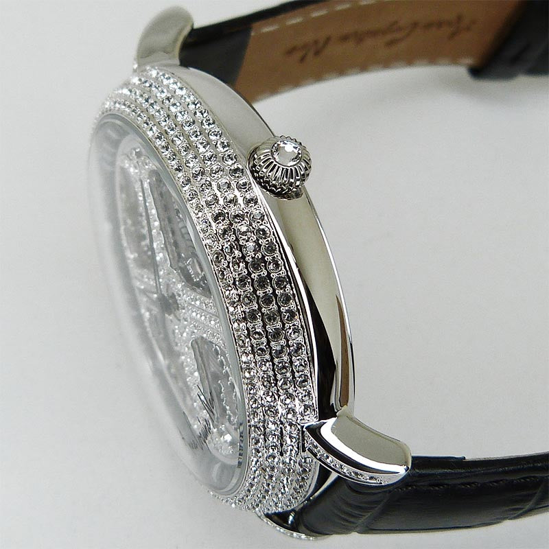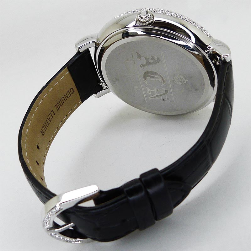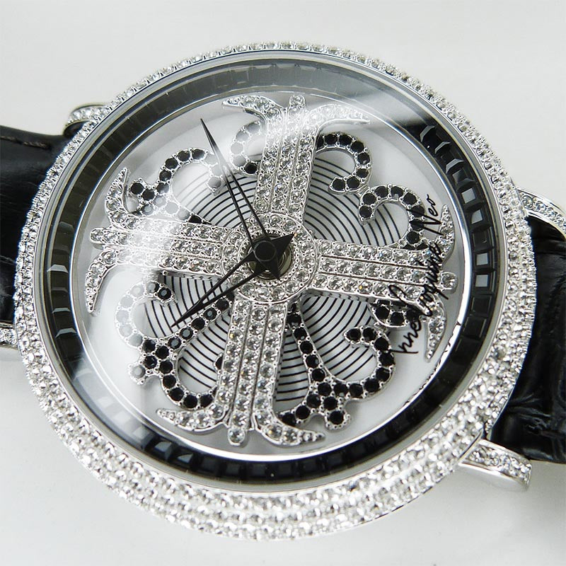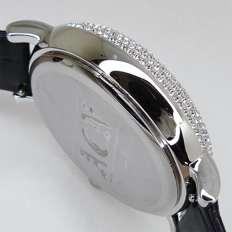 未使用展示商品でしたが、付属品の欠品と小傷、擦り傷、線傷・打ち傷痕がございますため、中古品として掲載いたします。クロスデザインとサークルデザインが2段交互に回るデザイン大きな文字盤とともに贅沢に煌めくスワロフスキーフレームが特徴的な時計です。 ◆◆◆ |