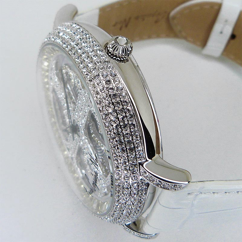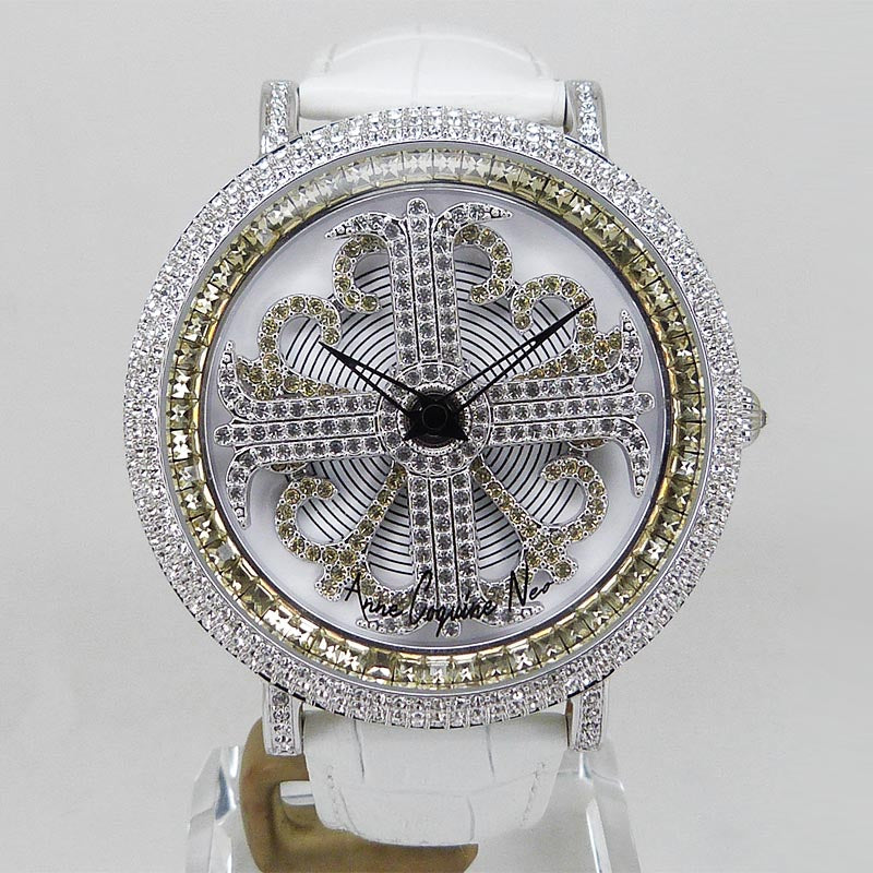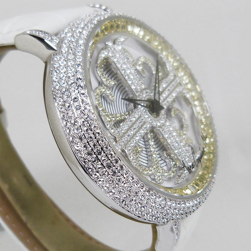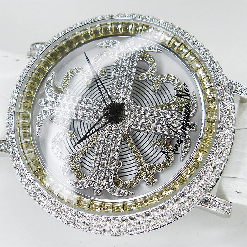 未使用展示商品です。ベルトに若干の汚れ、細かな展示傷がございます。クロスデザインとサークルデザインが2段交互に回るデザイン大きな文字盤とともに贅沢に煌めくスワロフスキーフレームが特徴的な時計です。 ◆◆◆ |