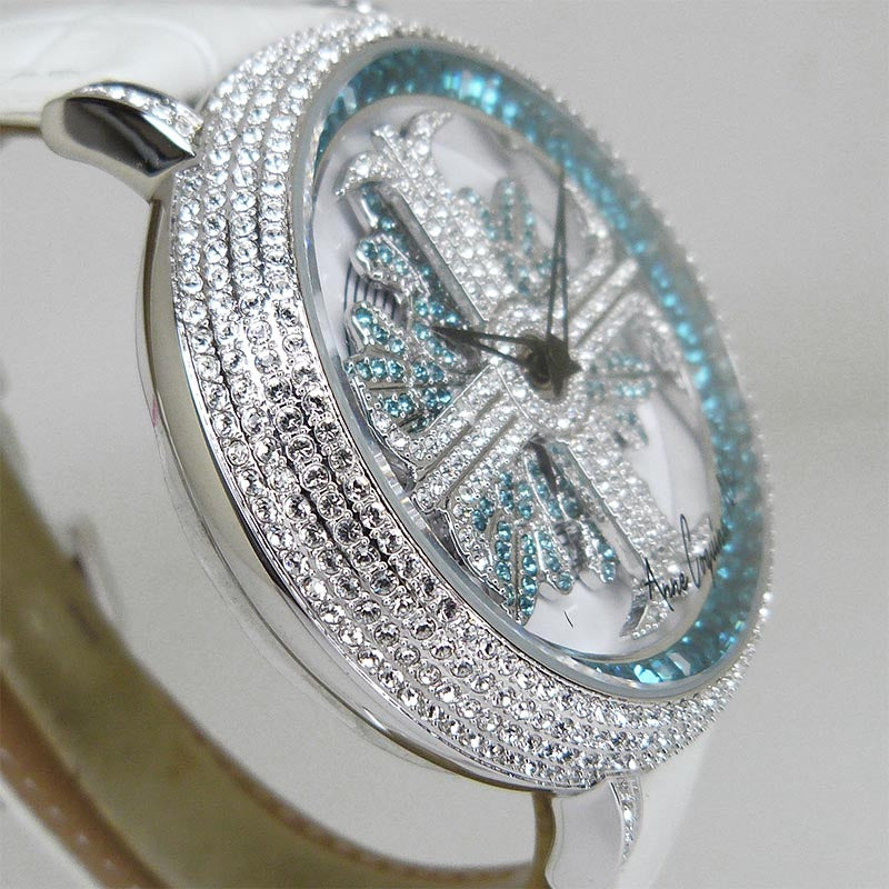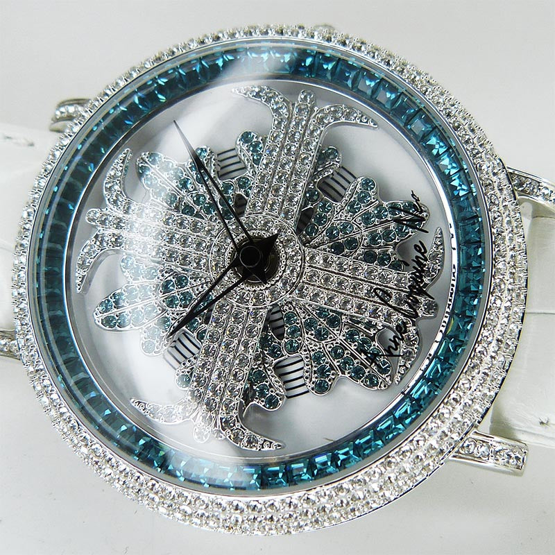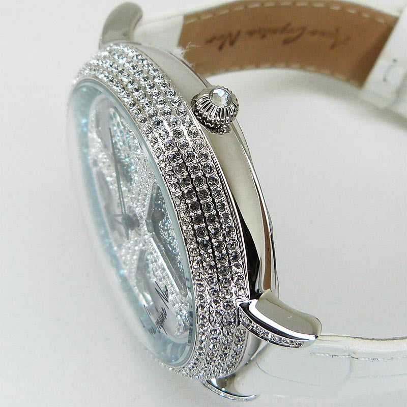 未使用展示商品です。ベルトに若干の汚れ、細かな展示傷がございます。クロスデザインとサークルデザインが2段交互に回るデザイン大きな文字盤とともに贅沢に煌めくスワロフスキーフレームが特徴的な時計です。 ◆◆◆ |