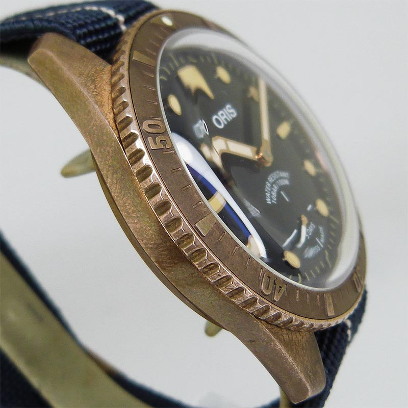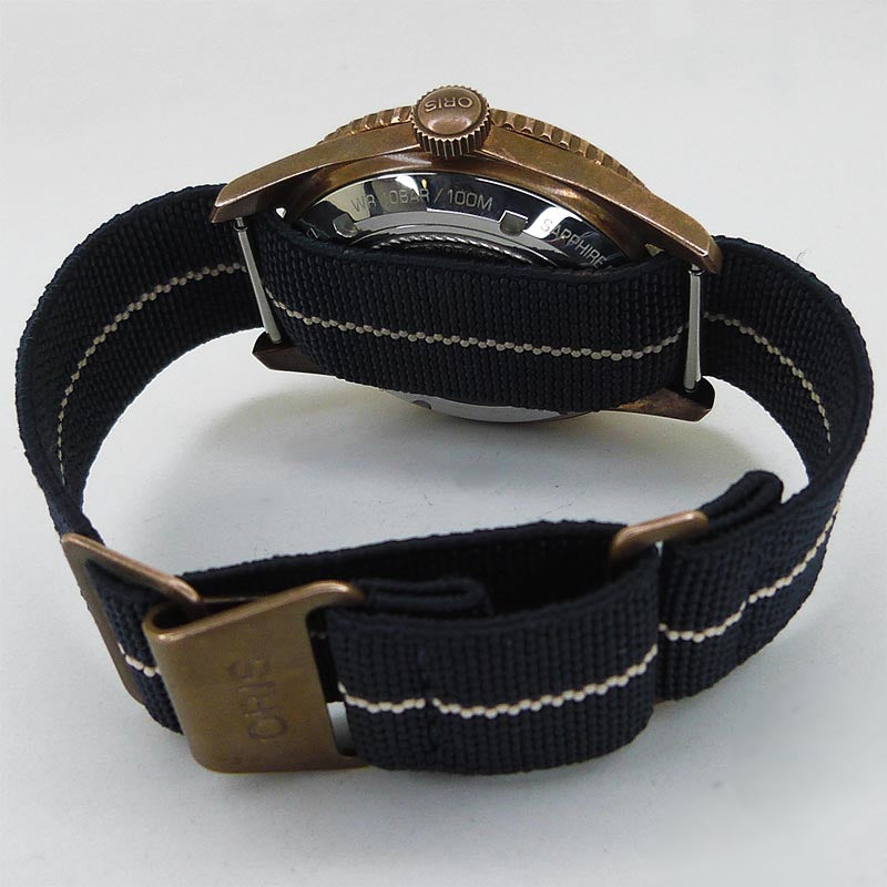 針・インデックスに微細な変色・劣化ダメージ、ブロンズ製部分のエイジング・緑青、日常使用に伴う小傷、擦り傷とストラップに若干の汚れ・使用感はございますが全体的には綺麗な状態です。最大腕周りは約18.5cmです。 ◆◆◆ |