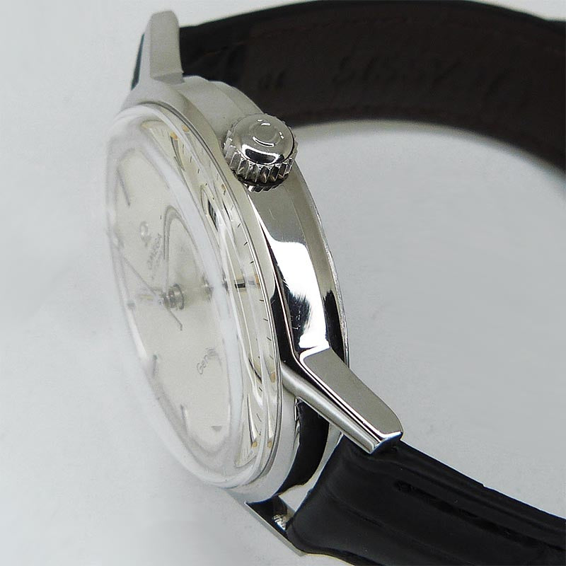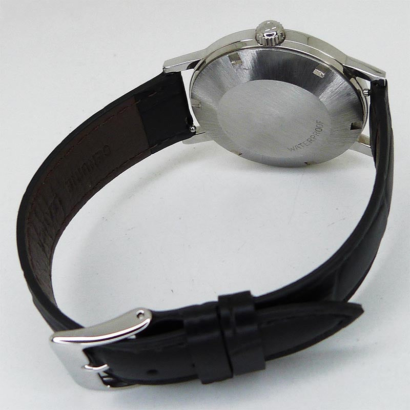 風防に細かな小傷・線傷・1時端付近に細かな打ち傷痕、針・インデックスに小傷・経年変化による腐食・劣化ダメージ、日常使用に伴う小傷、擦り傷、線傷・細かな打ち傷痕はございますが全体的には綺麗なアンティーク商品です。革ベルトと尾錠は社外品の新品に交換してあります。リューズを2段引き上げる動作によりカレンダーの日付早送りが可能です。1段目が針回しとなります。 ◆◆◆ |