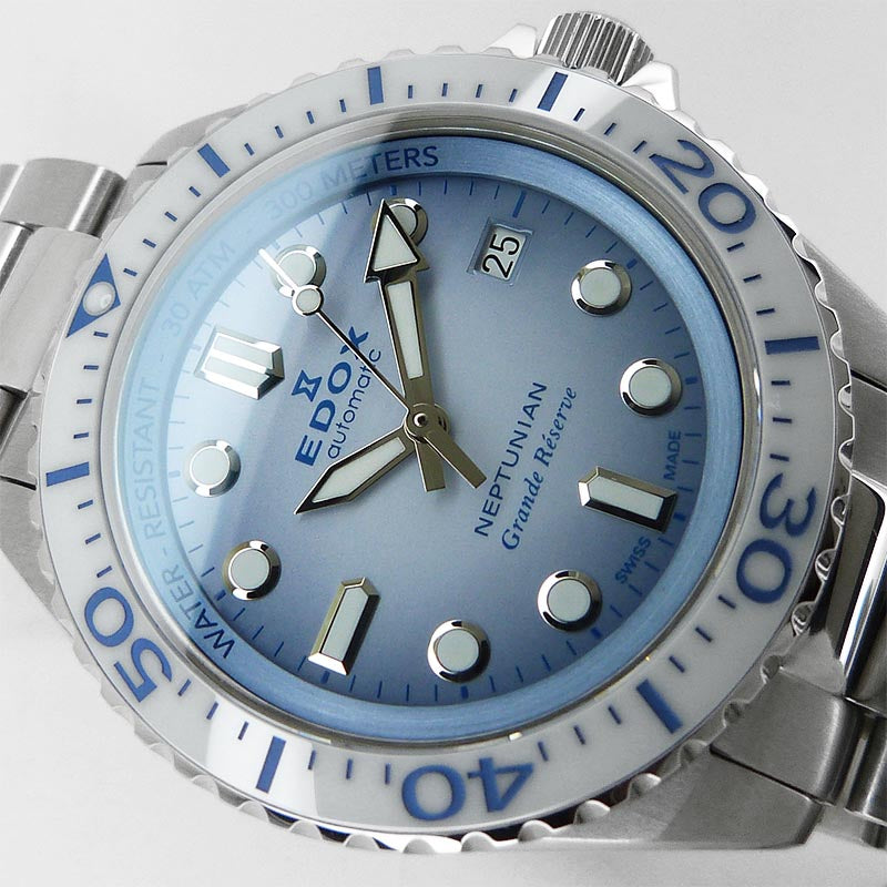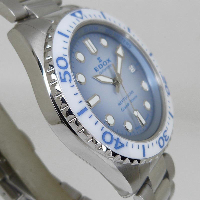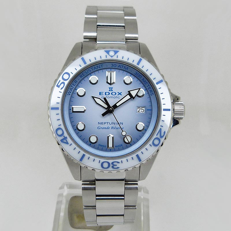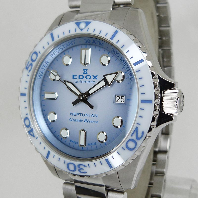 中古美品エドックス【EDOX】 80801-3BBUM-BUCDN ネプチュニアン グランデ リザーブ デイト オートマティック グラデーションブルー