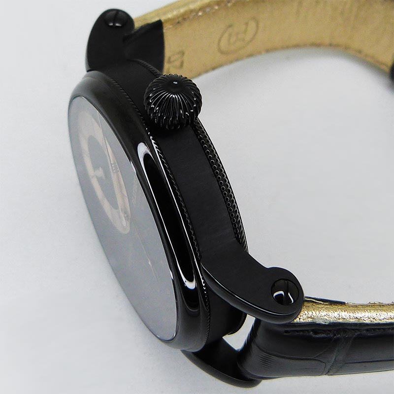 ガラス12時付近に微細な小傷・擦り傷痕、使用に伴う小傷、擦り傷、細かな打ち傷痕はございますが全体的に綺麗な状態です。純正革ベルトもほぼ使用感の無い良好なコンディションです。アメリカ発の雑誌ブランド「プレイボーイ」のドイツ版コラボ、DLCによる黒いケースとゴールドのインダイヤルがゴージャスな限定45本の稀少モデルです!! |